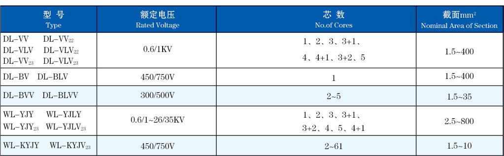 1. The rated voltage of cable,allowable working temperature of conductor and laying temperature of cable are