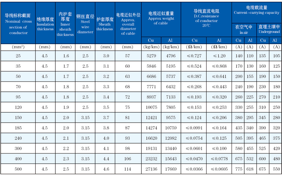 6/Ⅲ 8.7/15kV三芯交聯聚乙烯絕緣,粗鋼絲鎧裝,聚氯乙烯護套電力電纜