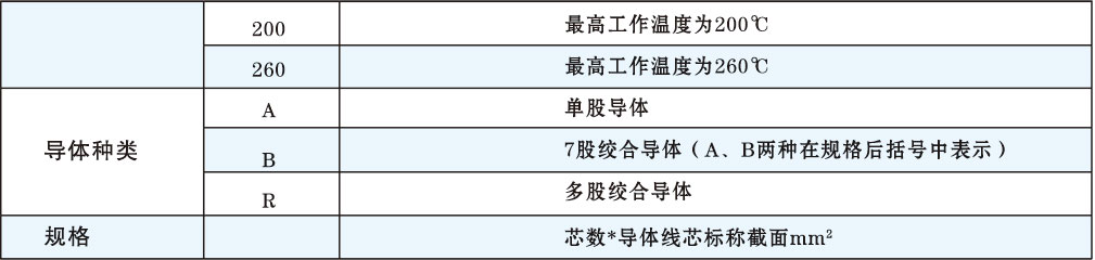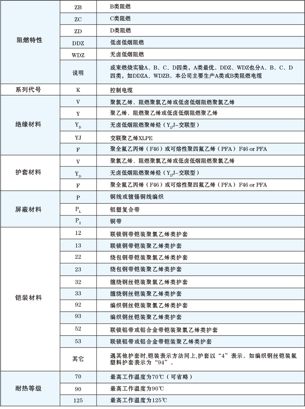 注:根據上述所例電纜型號說明,可以選擇各種組合以滿足需要。